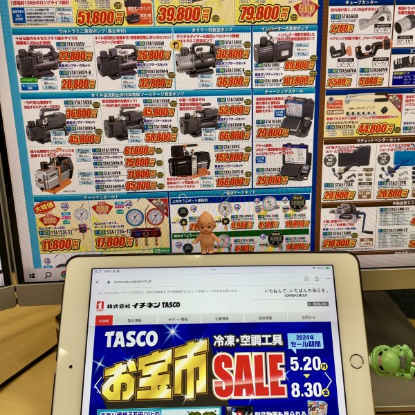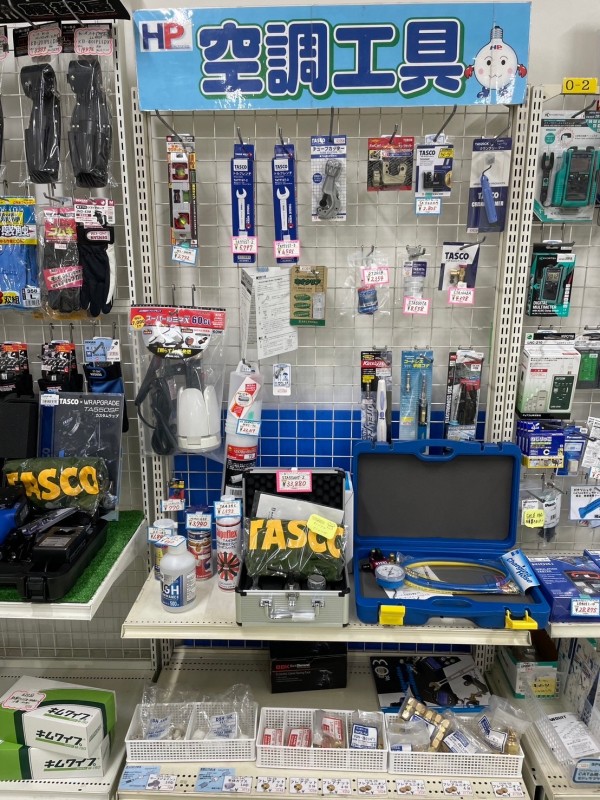 お宝市チラシ掲載のプロ向け空調工具を一部ですが、2F新市街店に展示しております。